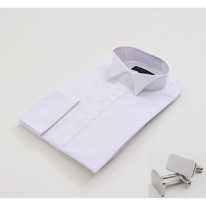 ウイングカラーシャツ、【カフスボタン付】ドレスシャツ白 送料無料 シングルカフス モーニング用シャツ 新郎用シャツ フォーマルシャツ MS-01